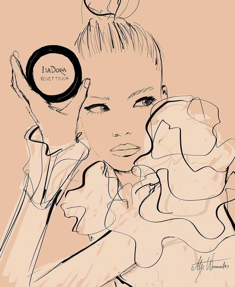 Alex Woronowska wykonała ilustrację promującą nowy puder IsaDora Velvet Touch z okazji premiery produktu. Ilustracja w formie plakatu została dołączona do wysyłki kreatywnej do influencerów i dziennikarzy.